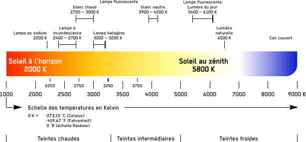 Au contraire, plus la valeur est élevée, plus la lumière parait froide (tend vers le bleu)